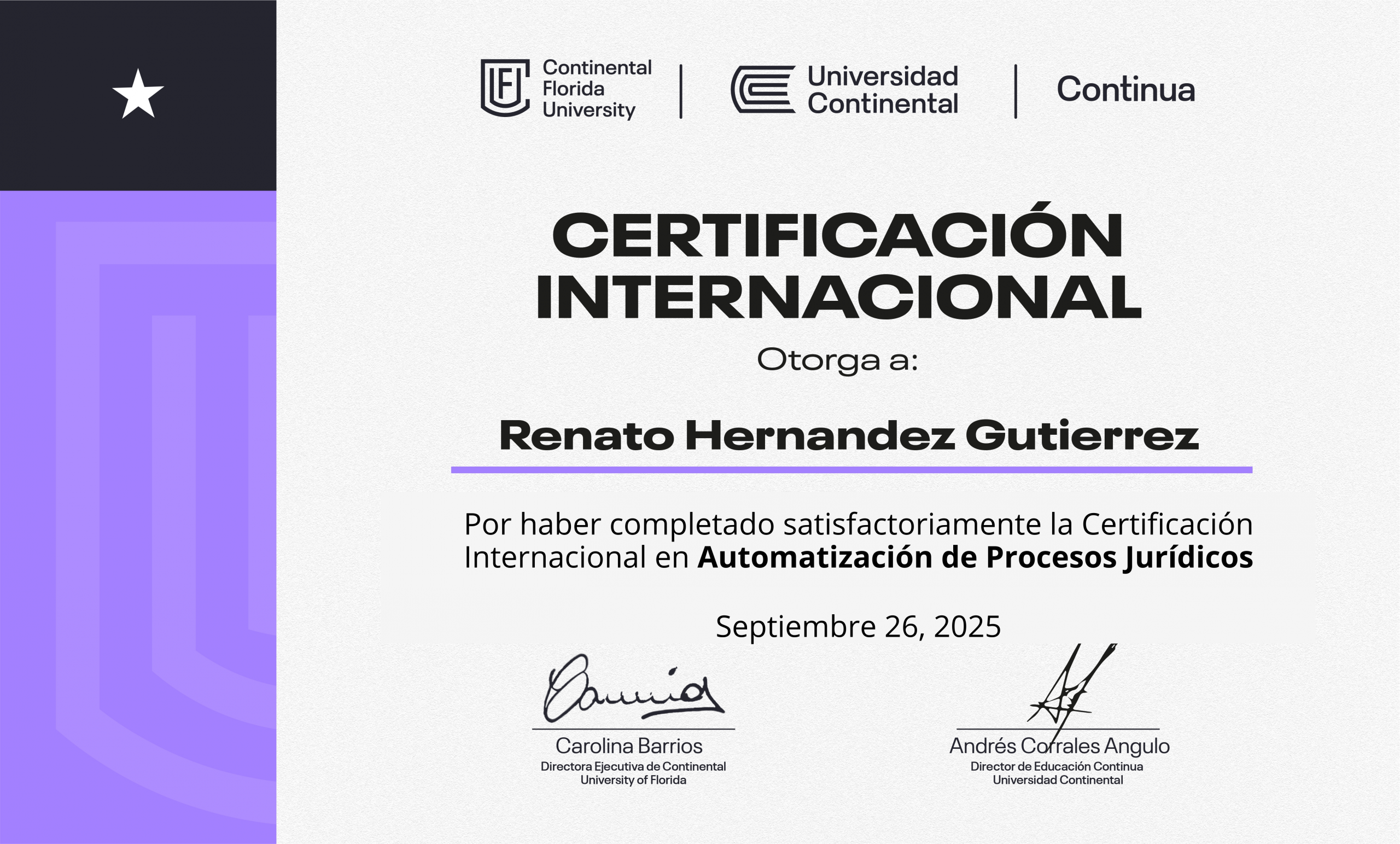 Este curso te permitirá adquirir habilidades clave en la digitalización y automatización de procesos legales mediante herramientas como RPA, Inteligencia Artificial y Smart Contracts. Aprenderás a optimizar la gestión de despachos jurídicos, mejorar la eficiencia de servicios legales y posicionarte como un abogado del futuro en un mercado cada vez más digitalizado.