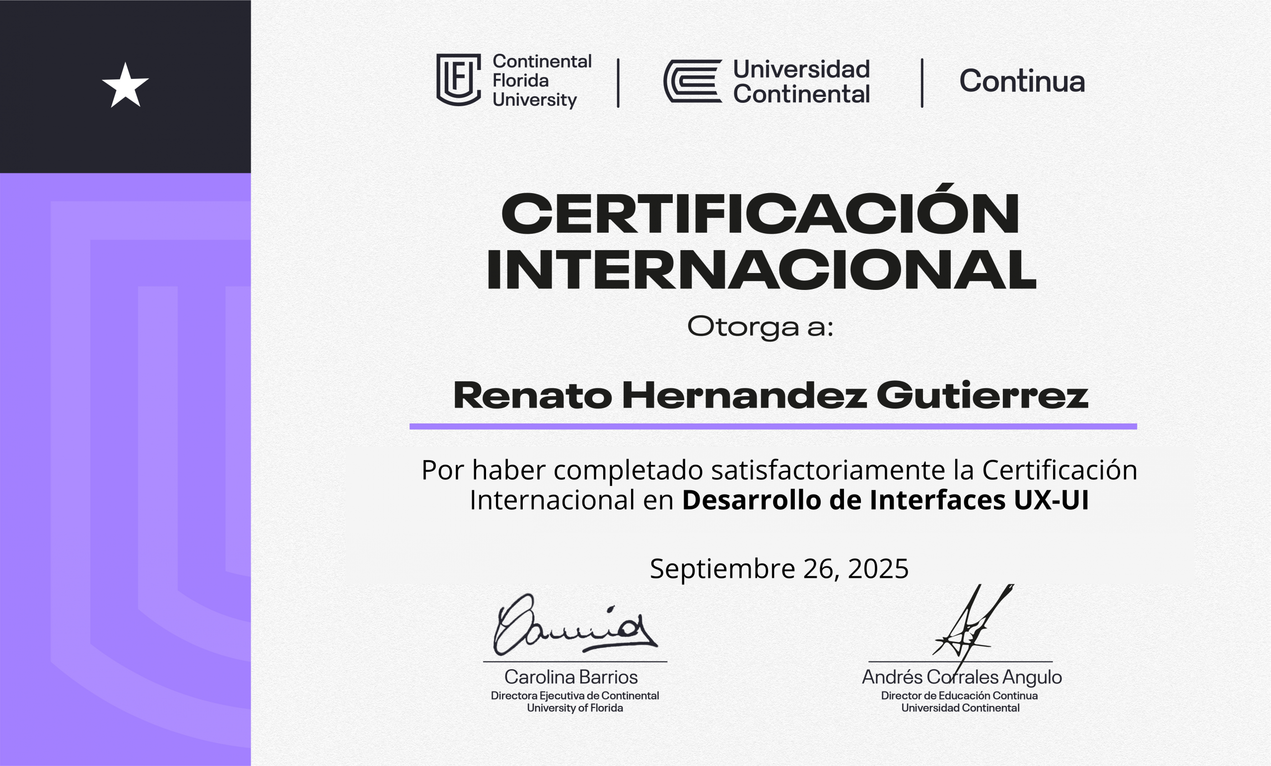 – Certificación Nacional (Centro de Educación Continua de la Universidad Continental – Perú)